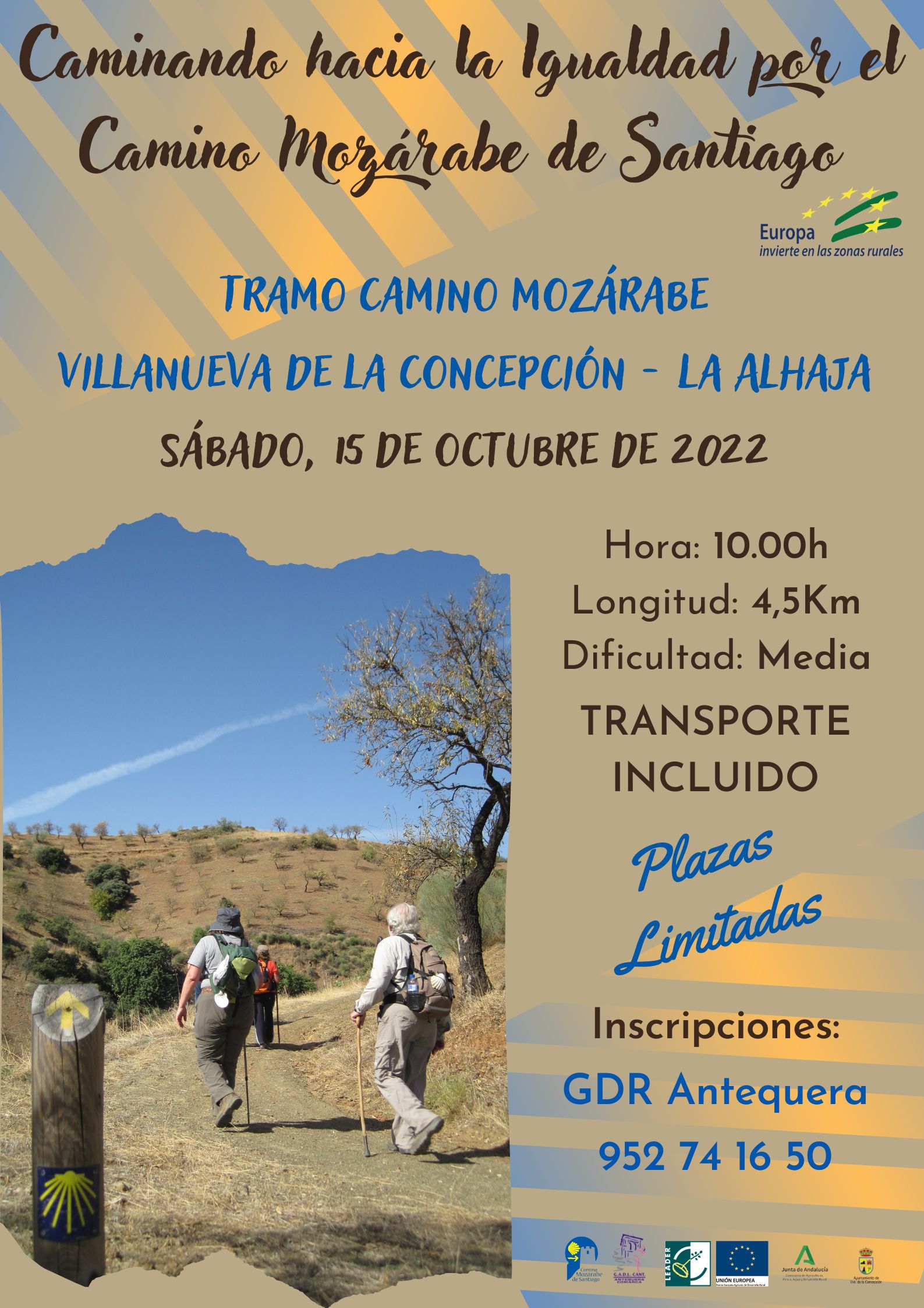 La actividad propuesta es una marcha senderista por uno de los tramos del Camino Mozárabe en la Comarca de Antequera, concretamente por el municipio de Villanueva de la Concepción en dirección Fuente La Alhaja, el próximo sábado 15 de octubre.