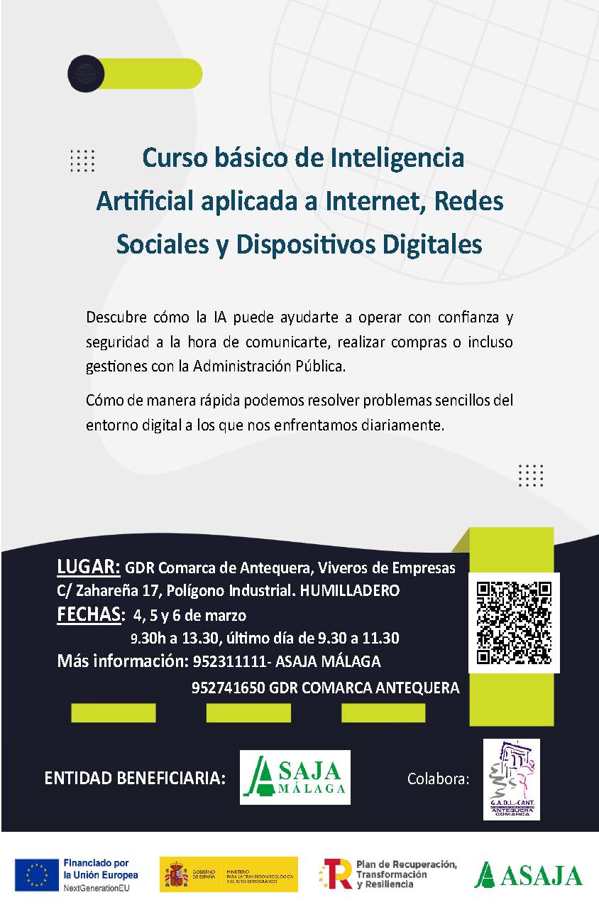 ASAJA Málaga va a impartir en nuestra sede del Vivero de Empresas de Humilladero un Curso Básico de Inteligencia Artificial aplicada a Internet, Redes Sociales y Dispositivos Digitales.